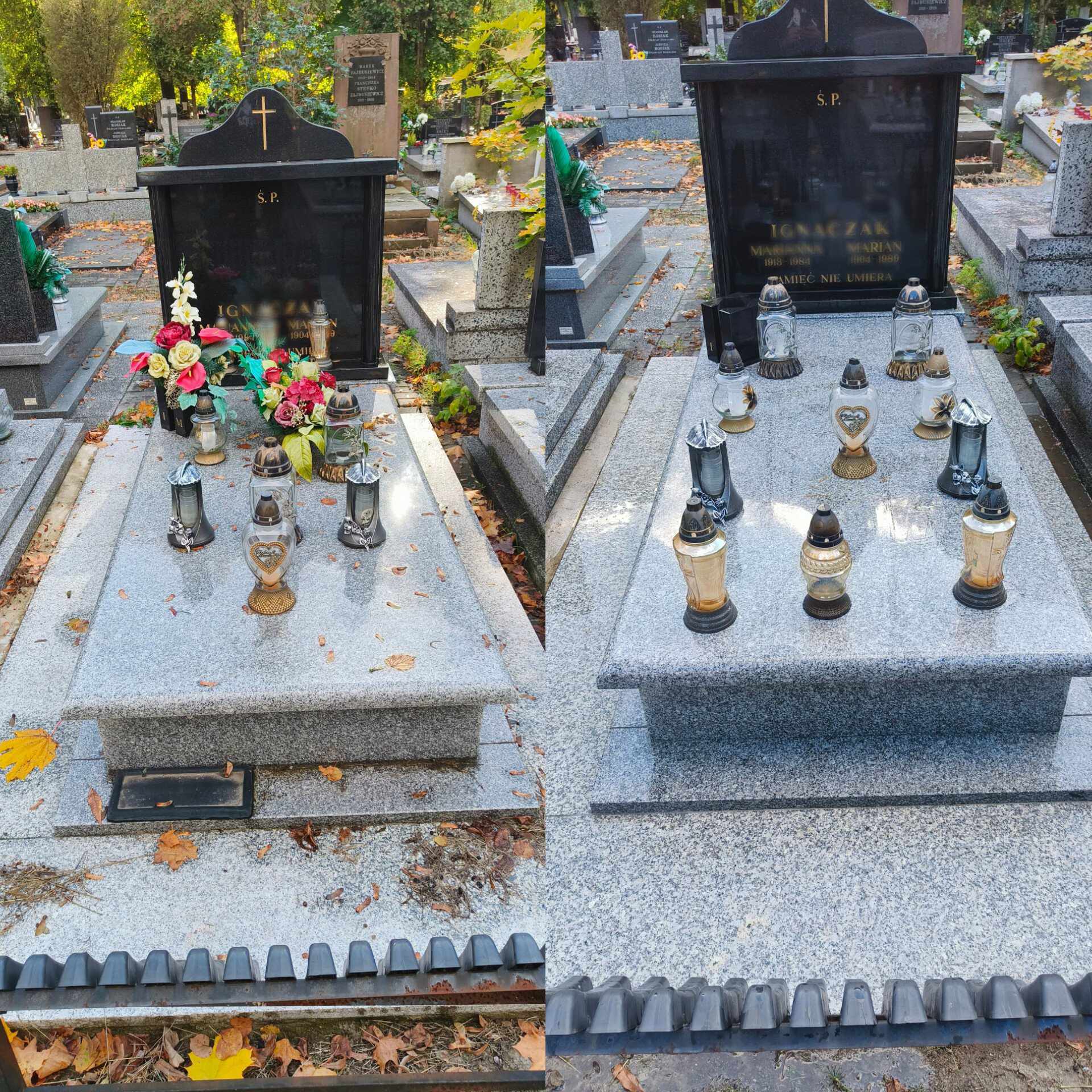 Wykonujemy zdjęcia przed i po wykonanych usługach, dokumentując stan grobu oraz wykonane prace, co stanowi pełną dokumentację dla klientów.